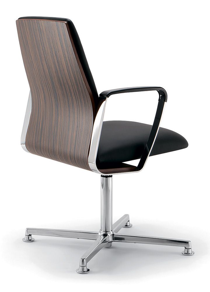 Кресло для посетителя Директа | Directa на крестовине, спинка в дереве натуральная кожа коричневая
