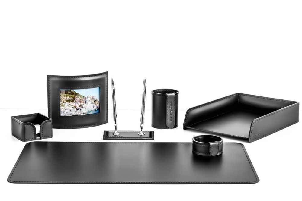 Настольный набор 7 предметов OPTIMA натуральная кожа черный