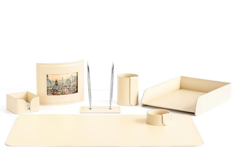 Настольный набор 7 предметов OPTIMA натуральная кожа слоновая кость