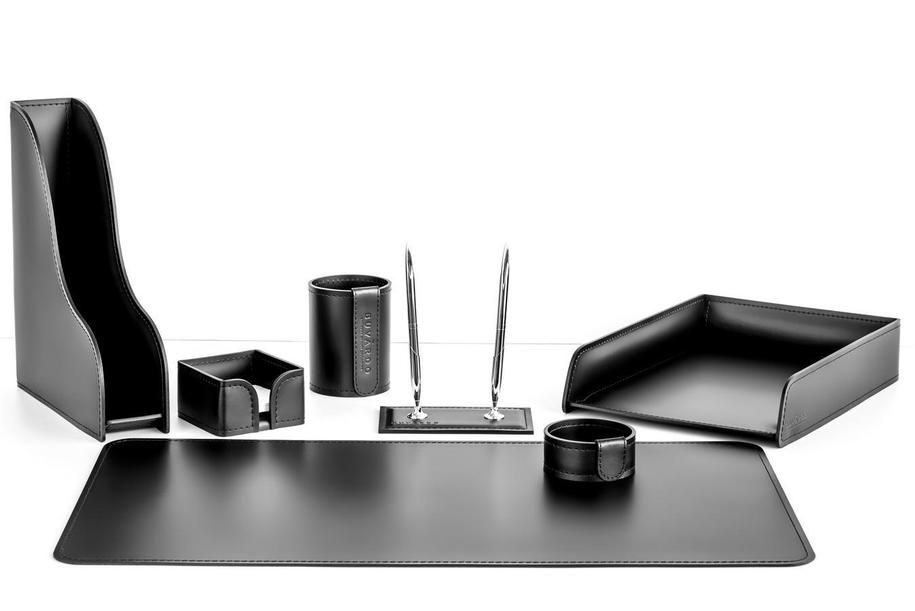 Настольный набор 7 предметов COMFORT натуральная кожа черный