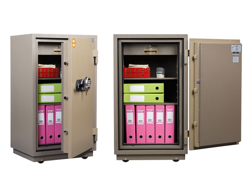 - В конструкции применен тепловой замок, обеспечивающий огнестойкость в области притвора дверцы сейфа и препятствующий прохождению теплового потока.
