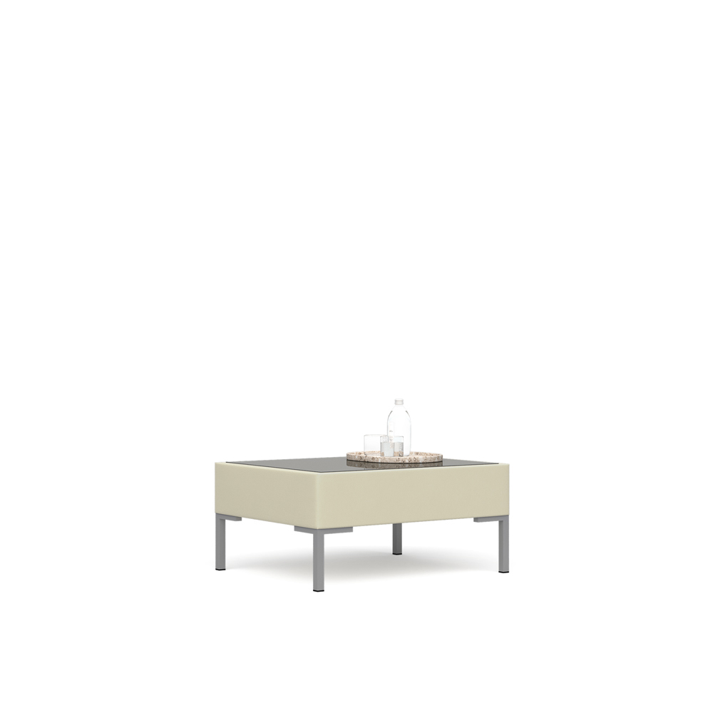 Стол журнальный со стеклом Сиеста 80x65x37 экокожа премиум светло-бежевая CN1112