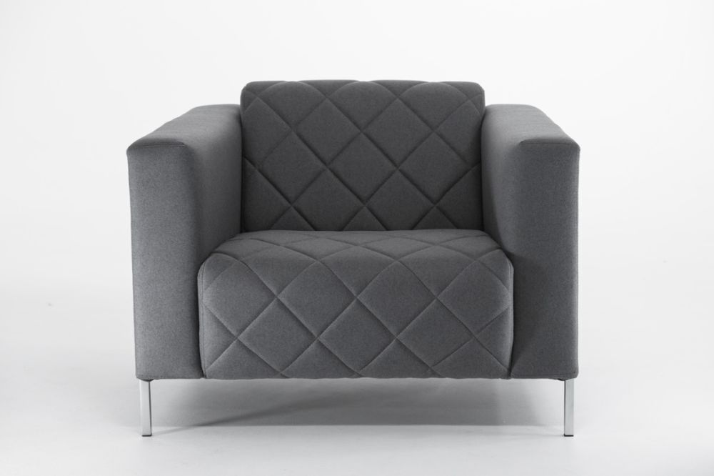 В коллекции Vispo мягкость серой войлочной обивки контрастирует с металлическим блеском хромированных опор. Войлок — менее распространенный материал, чем кожа или ткань, поэтому с мягкой мебелью Vispo ваша приемная будет выглядеть современно и необычно. Войлок обработан специальной водоотталкивающей пропиткой, что облегчает уход за мягкой мебелью и обеспечивает ее долговечность.